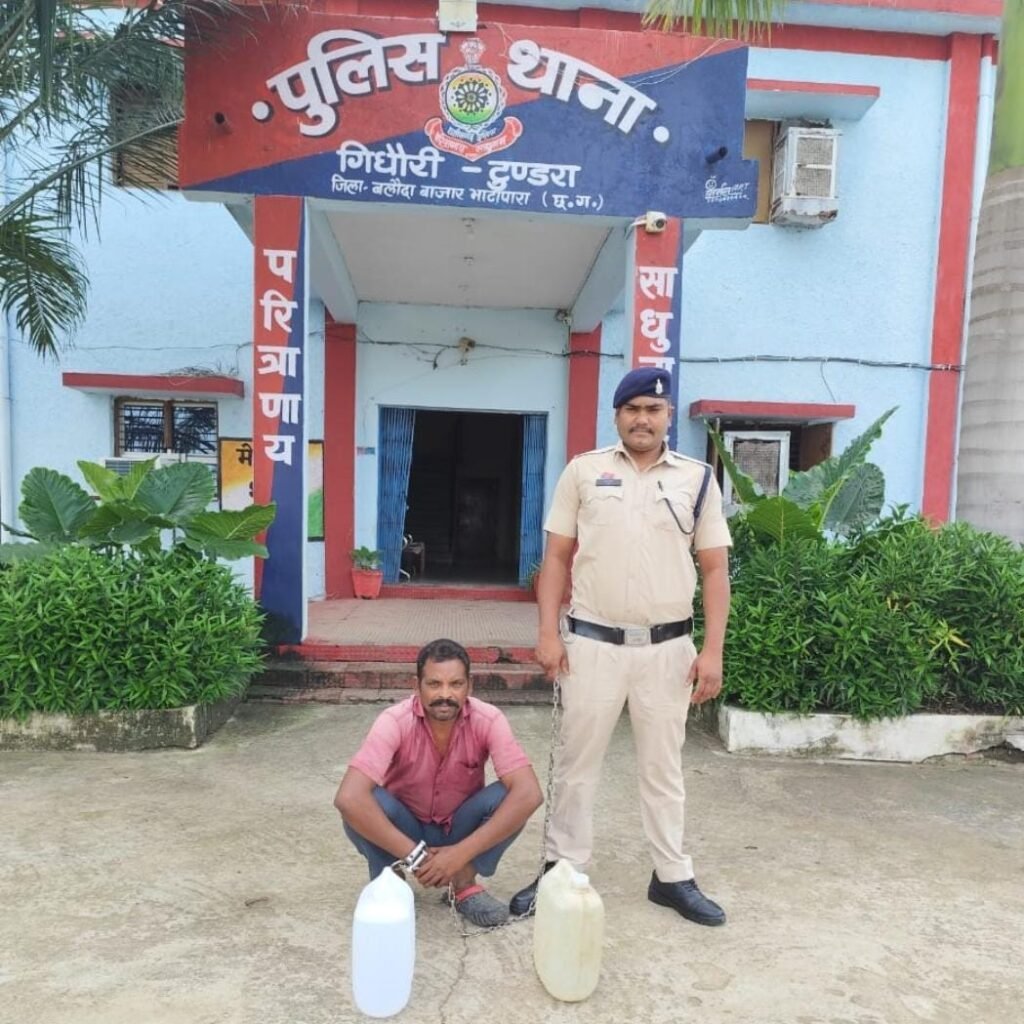 पुलिस अधीक्षक श्रीमती भावना गुप्ता के निर्देशन में आमजनों की शिकायत एवं समस्याओं का त्वरित निराकरण करने हेतु जिले में महत्वाकांक्षी योजना “समाधान सेल” प्रारंभ किया गया है, जिसकी सहायता से किसी भी प्रकार की सूचना, शिकायत अथवा आपराधिक गतिविधि की जानकारी “समाधान सेल” हेल्पलाइन नंबर 94792 20392 में व्हाट्सएप अथवा कॉल के जरिए प्रदान की जा सकती है। “समाधान सेल” के माध्यम से आपराधिक कार्यों में संलिप्त व्यक्तियों की धरपकड़ में भी लगातार कामयाबी मिल रही है। इसी तारतम्य में आज दिनांक 17.09.2025 को “समाधान सेल” में प्राप्त सूचना के आधार पर थाना गिधौरी की पुलिस टीम द्वारा ग्राम सेमरा (भैसामुडा) नारायण तालाब के पास में घेराबंदी कर अवैध रूप से शराब बिक्री करते हुए 01 आरोपी को गिरफ्तार किया गया है। आरोपी शराब कोचिया से ₹4000 कीमत मूल्य का 20 लीटर हांथ भट्टी कच्ची महुआ शराब जप्त किया गया है। आरोपी के विरुद्ध थाना गिधौरी में धारा 34(2) आबकारी के तहत प्रकरण पंजीबध्द कर आरोपी को गिरफ्तार करते हुए माननीय न्यायालय के समक्ष प्रस्तुत करने की प्रक्रिया की जा रही है।आरोपी- परस राम उम्र 45 वर्ष निवासी ग्राम सेमरा (भैसामुडा) थाना गिधौरी