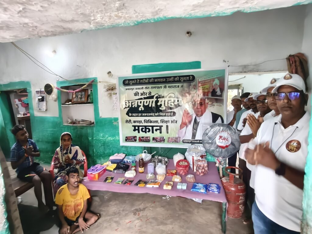 संत रामपाल जी महाराज जी की प्रेरणा से ग्राम डिग्गी में सेवा कार्य संपन्न हुआ ग्राम डिग्गी, पोस्ट शिकारी केसली तहसील सिमगा जिला बलौदाबाजार (छत्तीसगढ़ संत रामपाल जी महाराज जी की प्रेरणा से अन्नपूर्णा मुहिम के अंतर्गत ग्राम डिग्गी में पहली बार एक अत्यंत जरूरतमंद और असहाय परिवार को आवश्यक खाद्य एवं घरेलू सामग्री प्रदान की गई।इस सेवा कार्य के माध्यम से गाँव की विधवा महिला तिरिथ बाई कुर्रे (उम्र 40 वर्ष), पति स्व. ललित कुर्रे, को राहत सामग्री दी गई।परिवार में कुल तीन सदस्य हैं। पति के निधन के बाद तिरिथ बाई अपने दो असहाय पुत्रों की देखभाल कर रही हैं। पारिवारिक स्थिति मनीष कुमार 18 वर्ष जन्म से दोनों हाथ-पैर से विकलांग, चलने में असमर्थ और बोल नहीं पाते। विवेक कुमार (16 वर्ष) मानसिक रूप से कमजोर एवं अस्वस्थ।परिवार की आर्थिक स्थिति अत्यंत दयनीय है। कोई स्थायी आय नहीं है। केवल महतारी वंदना योजना से ₹1000 प्रतिमाह की सहायता प्राप्त होती है। न जमीन है, न पशुधन, न बैंक बैलेंस। शासन की अंत्योदय योजना के अंतर्गत 35 किलो चावल प्रतिमाह प्राप्त होता है। आवास योजना से मकान निर्माणाधीन है, किंतु बाथरूम की सुविधा उपलब्ध नहीं है।राशन व आवश्यक सामग्री प्रदान की गई।राशन किट में 15 किग्रा पतली चावल, 2.5 किग्रा आटा, 2.5 किग्रा प्याज, 2.5 किग्रा आलू, 1 लीटर सरसों तेल, मसाले, नमक, 2 किग्रा चीनी, चाय, दूध पाउडर, नहाने का साबुन, वाशिंग पाउडर, कपड़े धोने का साबुन, 4 प्रकार की दालें, बेसन, दालिया आदि शामिल थे।इसके अतिरिक्त कपड़े (बच्चों हेतु 2-2 जोड़ी शर्ट-पेंट), 1 जोड़ी चप्पल, गैस सिलेंडर रीफ़िल, 3 थाली, 3 ग्लास, कड़ाही, चम्मच और स्टैंड पंखा भी प्रदान किया गया।लाभार्थी एवं ग्रामीणों की भावनाएं संत रामपाल जी महाराज मेरे घर के लिए भगवान बनकर आए हैं, मेरी सभी समस्याओं का समाधान कर दिए हैं।तिरिथ बाई कुर्रे लाभार्थी जीवन भर बेटी की मदद के लिए पैर छूकर प्रणाम।तिलूराम कुर्रे ग्रामीण इस तरह गरीबों के घर जाकर सेवा देने वाले संत पहली बार देखे हैं, संत रामपाल जी महाराज को प्रणाम।रोहित टंडन ग्रामीण अन्नपूर्णा मुहिम के अंतर्गत यह सेवा संत रामपाल जी महाराज जी की प्रेरणा से समाज में मानवीयता, करुणा और सहयोग की मिसाल प्रस्तुत कर रही है।