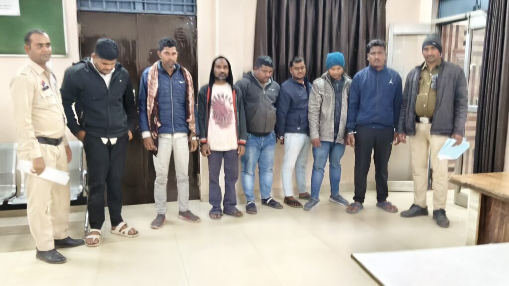 दिनांक 09.01.2026 को थाना भाटापारा ग्रामीण पुलिस द्वारा मुखबिर सूचना पर ग्राम तरेंगा में अवैध रूप से शराब बिक्री करने वाले आरोपी अमर यदू को गिरफ्तार किया गया। प्रकरण में पुलिस द्वारा विधिवत कार्रवाई करते हुए आरोपी से ₹4600 मूल्य का 40 पाव देसी मसाला शराब जप्त किया गया तथा आरोपी के विरुद्ध थाना भाटापारा ग्रामीण में अपराध क्र. 25/2026 धारा 34(2) आबकारी एक्ट का प्रकरण पंजीबद्ध कर विवेचना में लिया गया। प्रकरण की जांच एवं विवेचना क्रम में यह आवश्यक था कि गिरफ्तार आरोपी को ग्राम तरेंगा में बिक्री करने के लिए तस्करी कर, अवैध रूप से शराब आखिर कौन उपलब्ध करा रहा है। सांथ ही भाटापारा ग्रामीण क्षेत्र में अवैध रूप से शराब बिक्री पर नकल कसने के लिए इस सप्लाई चैन का पता लगाकर पर्दाफाश करना भी अत्यंत आवश्यक था। इस दौरान पुलिस अधीक्षक श्रीमती भावना गुप्ता द्वारा भाटापारा ग्रामीण क्षेत्र में अवैध रूप से शराब बिक्री/तस्करी करने वाले सप्लाई चैन एवं इस संगठित गिरोह का पता लगाते हुए इसके सभी सदस्यों को गिरफ्तार करने हेतु श्री हेमसागर सिदार अतिरिक्त पुलिस अधीक्षक भाटापारा, श्री तारेश साहू एसडीओपी भाटापारा एवं निरीक्षक हेमंत पटेल थाना प्रभारी भाटापारा ग्रामीण को आवश्यक दिशा निर्देश दिया गया। उक्त निर्देशों के परिपालन में पुलिस टीम द्वारा त्वरित कार्यवाही करते हुए गिरफ्तार आरोपी अमर यदू से पूछताछ एवं मेमोरेंडम कथन के आधार पर प्रकरण में संलिप्त अन्य आरोपियों का पता तलाश प्रारंभ किया गया। गिरफ्तार आरोपी अमर यदू से पूछताछ पर पता चला कि वह अपने गांव में लुका छुपी में शराब का विक्रय करता है तथा पटपर भाटापारा में चाय की दुकान चलाने वाले नितेश रात्रे द्वारा उसे शराब उपलब्ध कराया गया है, जिस पर पुलिस द्वारा तत्काल नितेश रात्रे को हिरासत में लिया गया। तत्पश्चात दोनों आरोपियों से विस्तृत पूछताछ एवं परिस्थितिजन्य साक्ष्यों के आधार पर क्षेत्र में अवैध रूप से शराब बिक्री एवं तस्करी करने का संगठित गिरोह चलाने वाले बाकी अन्य 05 आरोपियों को हिरासत में लिया गया। प्रकरणों में सभी आरोपियों द्वारा अवैध रूप से लाभ अर्जित करने के उद्देश्य से संगठित गिरोह बनाकर क्षेत्र में अवैध रूप से शराब बिक्री एवं तस्करी करना स्वीकार किया गया। संपूर्ण प्रकरण में पुलिस टीम को भाटापारा ग्रामीण क्षेत्र अंतर्गत अवैध रूप से शराब तस्करी एवं बिक्री करने वाले 07 सदस्यीय संगठित गिरोह का सफलता पूर्वक पर्दाफाश करने में सफलता मिली है। कि प्रकरण में सभी आरोपियों को विधिवत गिरफ्तार कर माननीय न्यायालय के समक्ष प्रस्तुत करने की प्रक्रिया की जा रही है।
