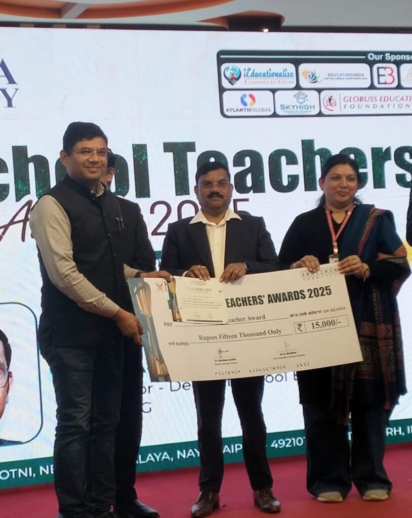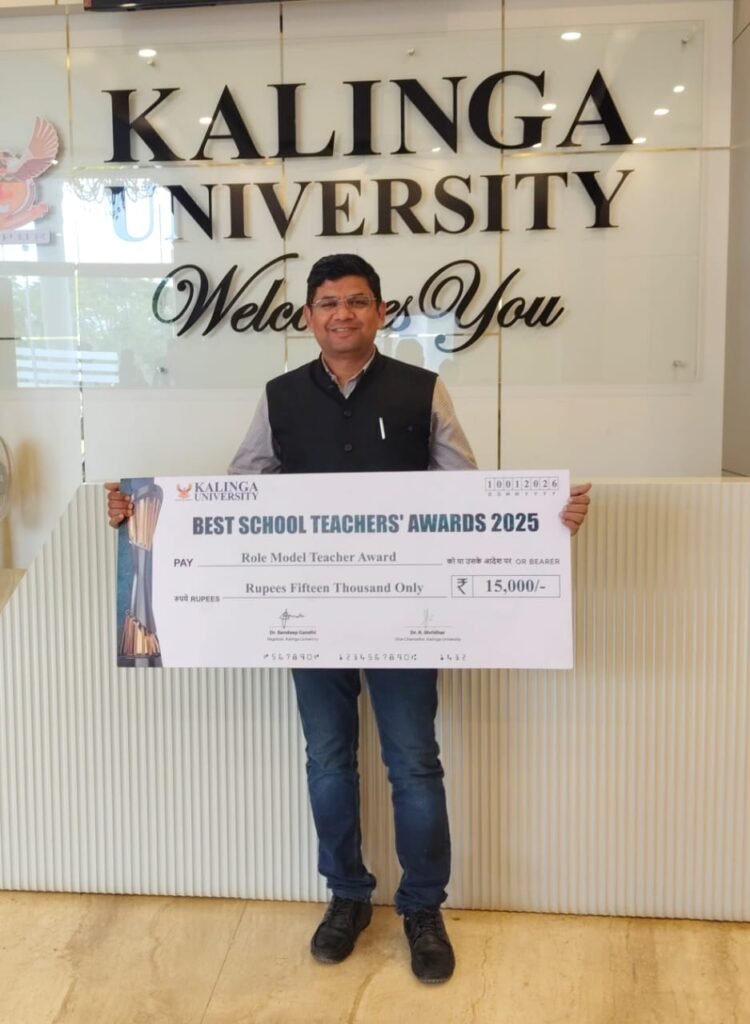 कलिंगा विश्वविद्यालय में आयोजित राष्ट्रीय शिक्षक सम्मान समारोह में छत्तीसगढ़ के सुशील कुमार पटेल, व्याख्याता, शासकीय उच्चतर माध्यमिक विद्यालय मिट्ठू नवागांव (जिला–बिलासपुर) को राष्ट्रीय स्तर पर बेस्ट टीचर्स अवार्ड 2025 का प्रथम पुरस्कार तथा रोल मॉडल टीचर अवार्ड से सम्मानित किया गया।इस सम्मान के अंतर्गत उन्हें ₹15,000 की पुरस्कार राशि प्रदान की गई।यह पुरस्कार भारत के विभिन्न राज्यों से चयनित शिक्षकों के मध्य शैक्षणिक सत्र 2024–25 की उत्कृष्ट उपलब्धियों के आधार पर प्रदान किया गया। राष्ट्रीय स्तर पर यह प्रथम पुरस्कार छत्तीसगढ़ को प्राप्त होना प्रदेश के लिए गौरवपूर्ण उपलब्धि है।सम्मान प्राप्त करने के उपरांत सुशील कुमार पटेल ने कहा कि समाज से प्राप्त निरंतर मार्गदर्शन, सहयोग और प्रेरणा ने उन्हें सदैव बेहतर कार्य करने की दिशा दी है, जिसके लिए उन्होंने समाज एवं शुभचिंतकों के प्रति हार्दिक आभार व्यक्त किया।इस अवसर पर आदरणीय डिप्टी डायरेक्टर,डीपीआई श्री बंजारा सहित विभागीय अधिकारी अत्यंत प्रसन्नचित दिखाई दिए। कार्यक्रम के दौरान शिक्षकों के साथ लंबे समय तक शैक्षणिक एवं नवाचार विषयों पर सार्थक संवाद भी हुआ।सुशील कुमार पटेल ने मंच से यह सराहनीय घोषणा की कि प्राप्त प्रथम पुरस्कार की संपूर्ण राशि ₹15,000 वे अपने विद्यालय के विद्यार्थियों के शैक्षणिक हित में खर्च करेंगे, जिससे बच्चों के सर्वांगीण विकास को बल मिलेगा।अंत में उन्होंने समस्त मरार पटेल समाज परिवार को सादर प्रणाम करते हुए धन्यवाद एवं आभार प्रकट किया।