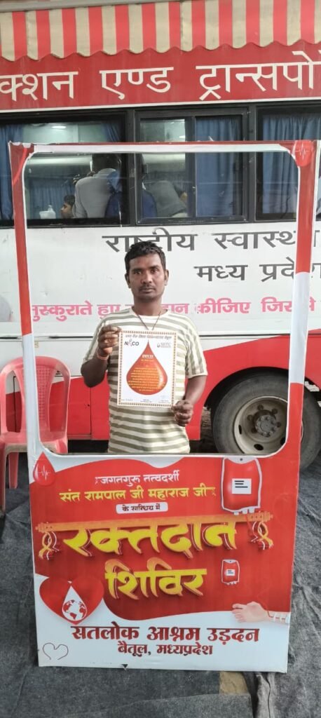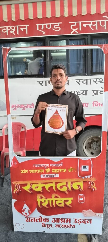 बैतूल, मध्यप्रदेश | 16-02-2026 संत रामपाल जी महाराज के 39वें बोध दिवस के पावन अवसर पर सतलोक आश्रम में विशाल भंडारे एवं रक्तदान शिविर का आयोजन किया गया। इस आध्यात्मिक समागम में देशभर से श्रद्धालुओं ने भाग लेकर मानव सेवा का प्रेरणादायक उदाहरण प्रस्तुत किया।इस अवसर पर जिला बलौदाबाजार, छत्तीसगढ़ से पहुँचे सेवादारों ने संत रामपाल जी महाराज के तत्वज्ञान से प्रेरित होकर 6 यूनिट रक्तदान की सेवा दी। रक्तदान शिविर स्वास्थ्य विभाग की निगरानी में सुरक्षित एवं व्यवस्थित रूप से संपन्न हुआ।आयोजन के दौरान विशाल भंडारे में हजारों श्रद्धालुओं ने प्रसाद ग्रहण किया। संत रामपाल जी महाराज के मार्गदर्शन में चल रहे सामाजिक अभियान जैसे रक्तदान, दहेजमुक्त विवाह, नशा मुक्ति, देहदान और मानव सेवा समाज में सकारात्मक परिवर्तन ला रहे हैं।यह रक्तदान शिविर जरूरतमंद मरीजों के लिए जीवनदायी सिद्ध होगा और सेवा, सद्भाव व मानवता का संदेश जन-जन तक पहुँचाएगा।