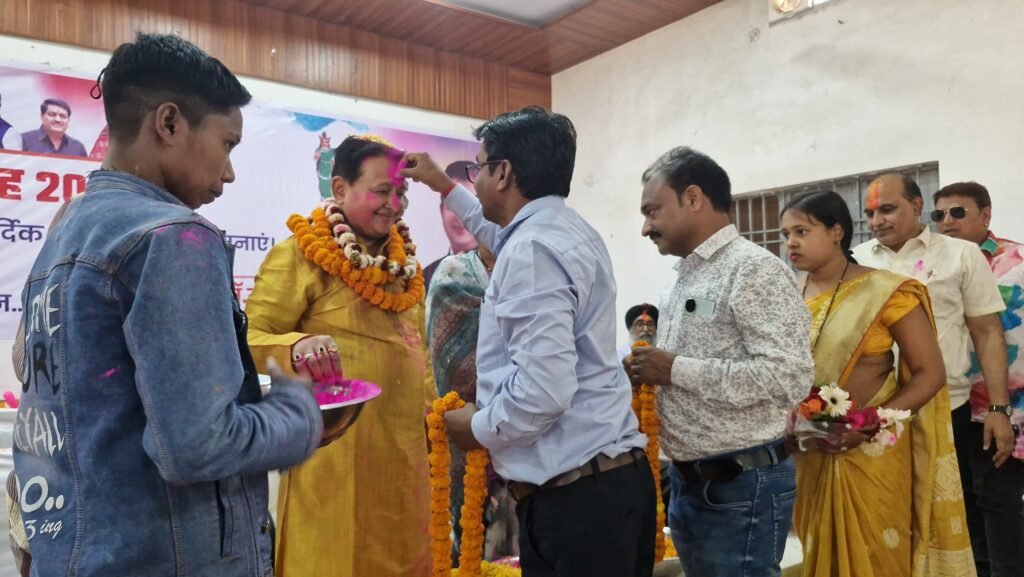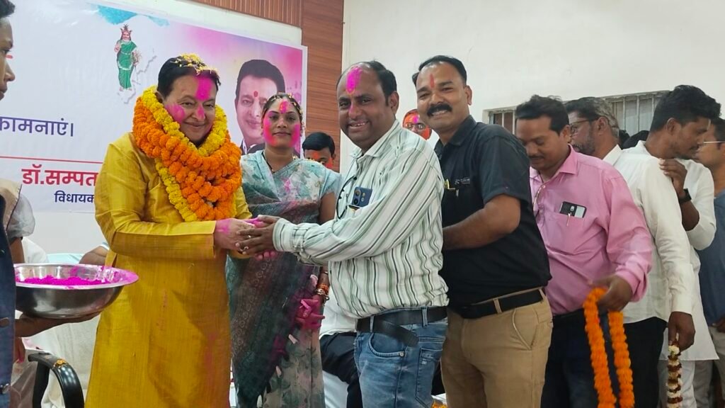 कार्यक्रम के दौरान विधायक डॉ. संपत अग्रवाल अपने समर्थकों के साथ नगाड़ा बजाते और होली गीतों की धुन पर थिरकते नजर आए। ढोल-नगाड़ों की गूंज और “होली है” के जयघोष से पूरा परिसर उत्साह से भर उठा। युवाओं ने रंग-बिरंगे गुलाल के बीच जमकर नृत्य किया, वहीं बुजुर्गों और महिलाओं ने भी उत्साहपूर्वक भाग लेकर कार्यक्रम की शोभा बढ़ाई।